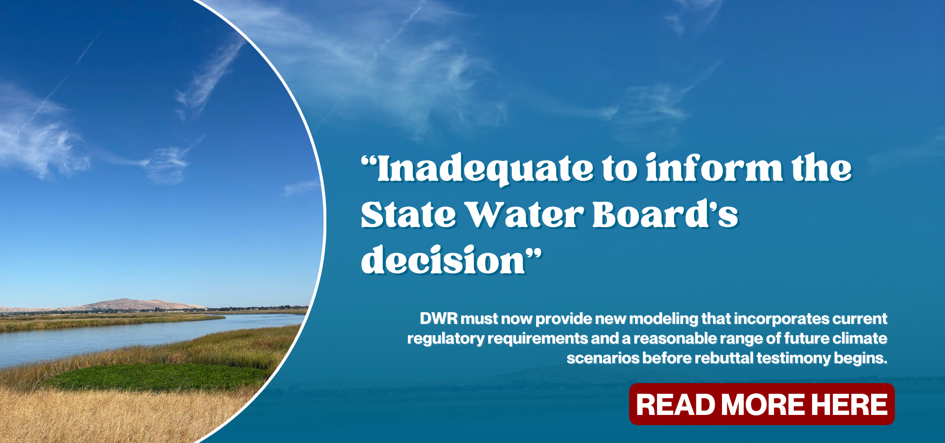 We advocate for a Delta with waters that are fishable, swimmable, and drinkable as described in the Clean Water Act in order to support the health of the estuary, San Francisco Bay, and the ocean beyond.
