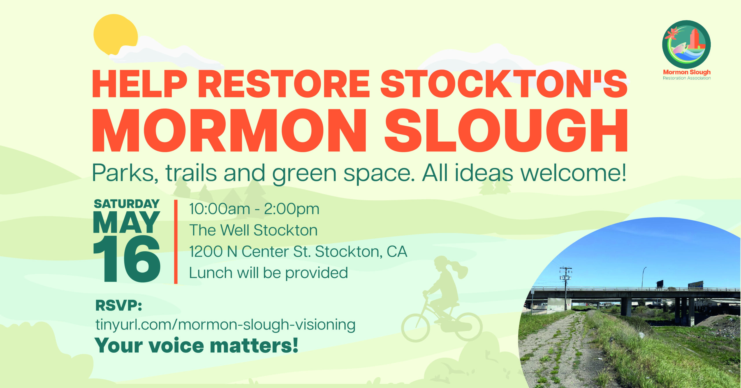 While this is a community-led initiative, we are working in partnership with city and county agencies, including the City of Stockton, City County, County officials, and the San Joaquin Area Flood Control Agency.